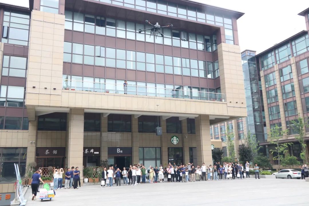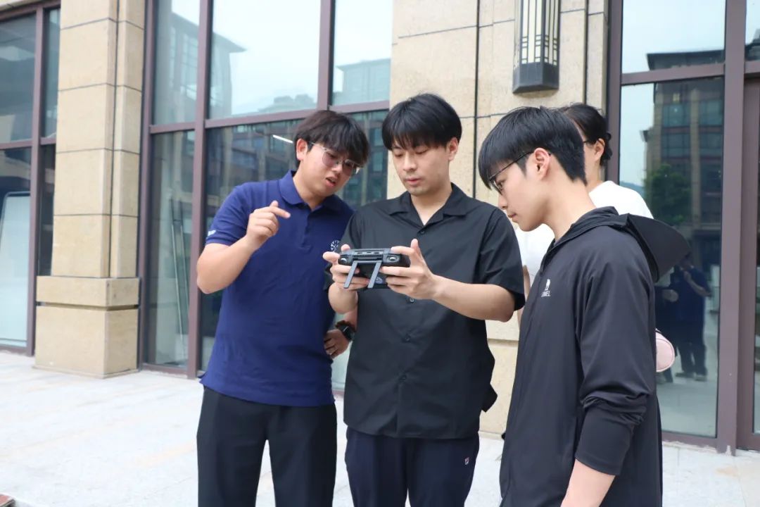 宣讲完后,大家一同前往智翔航空展厅和无人机天之翼救援队展厅参观无人机设备,了解无人机在交通中的应用场景。在一楼大厅,智翔技术及教官团队为大家展开FPV无人机花飞表演、无人机行业机飞行和运载机载物表演。无人机在空中翻转,上下飞行,大家纷纷惊叹科技的力量。随后,大家实践兴趣满满,分组尝试无人机航拍。