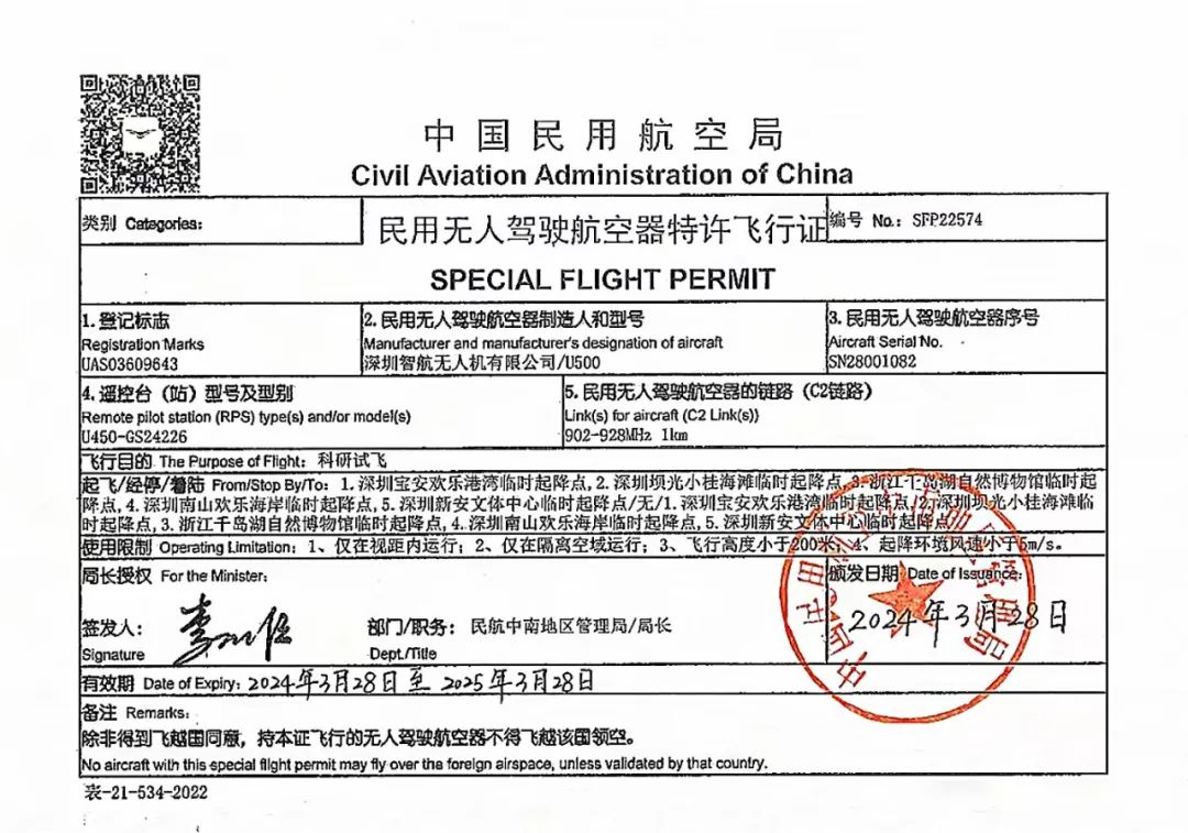 智航的 eVTOL载人飞碟已获得多地文旅景区投出橄榄枝。并且,载人飞碟获得了中国民航中南局颁发的特许飞行证,这一殊荣使智航成为深圳首家获得载人飞行器类特许飞行证的企业。