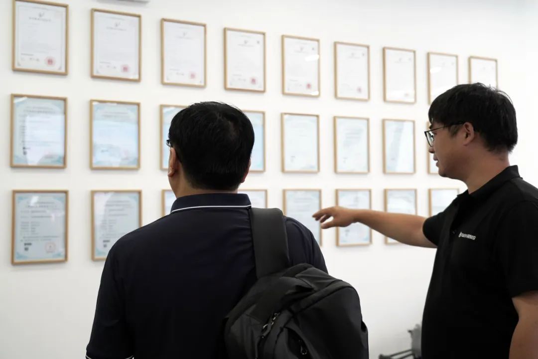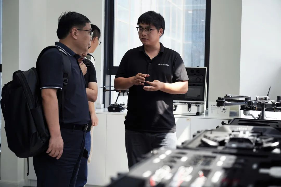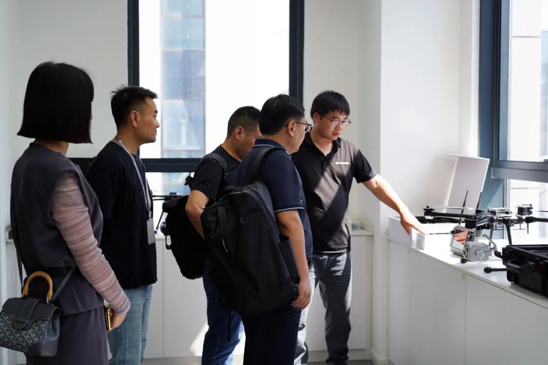 在考察活动的行程中,深圳信息职业技术学院专家组在我司展厅进行了一次详尽的实地参观。在这个环节,专家们亲眼见到了我司在无人机教育教学领域所采用的专业设备,以及在无人机行业中投入使用的先进技术与设备。展厅内陈列了各种型号和规格的无人机教学产品设备,从教学专用的入门级到专业级别的高端设备,展现了无人机技术的多样性和广泛应用前景。