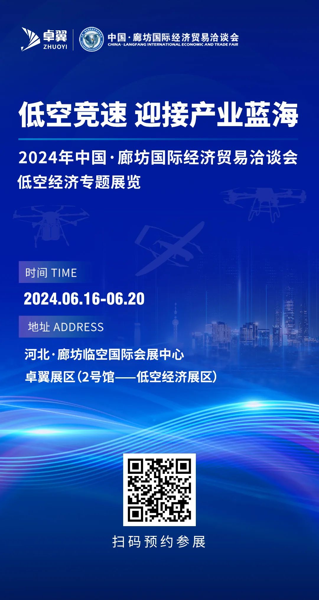 卓翼智能诚邀您于6月16日-6月20日莅临廊恰会2号馆低空经济展区现场,深入交流低空经济前沿技术成果,共同推动低空经济产业的创新与发展,为构建全球低空经济生态圈贡献力量。