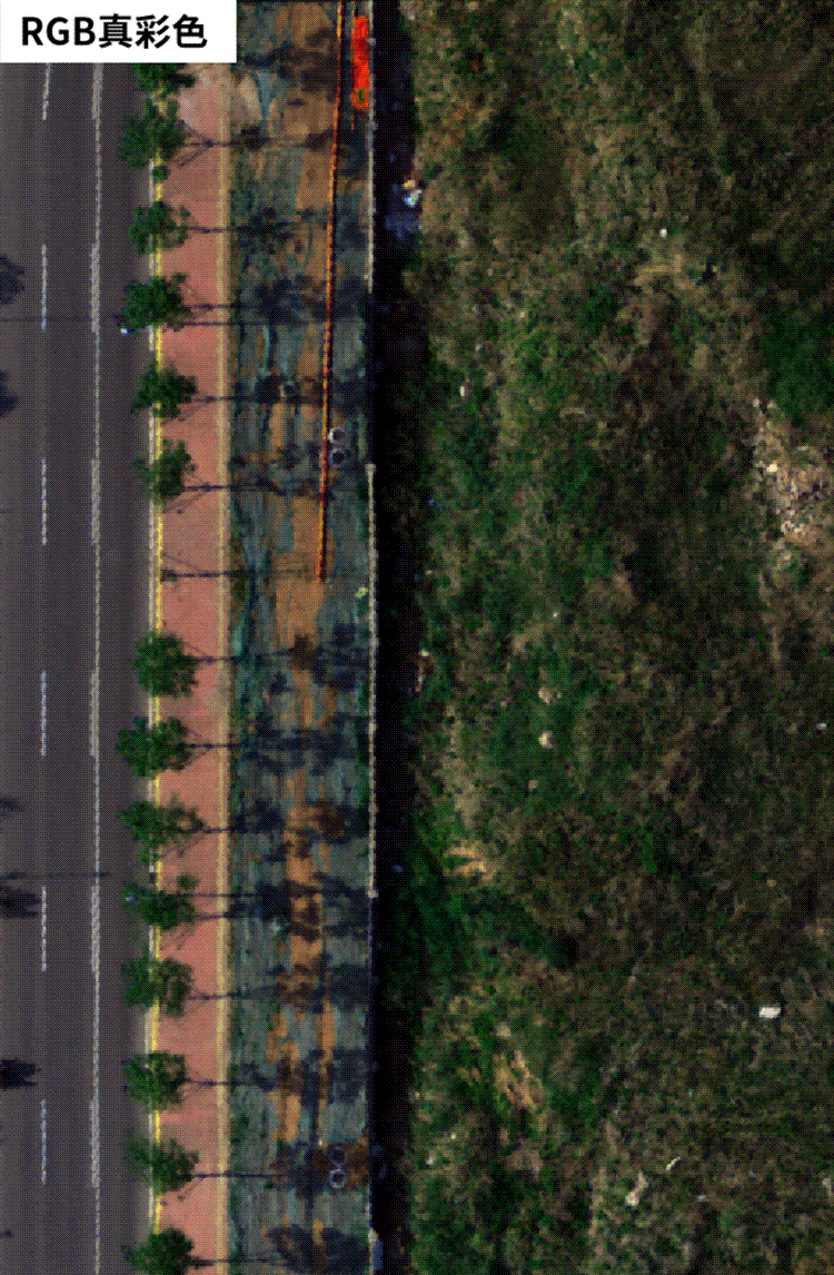 城建防尘网是城市环境调查与建筑施工监督的重要监测对象,未开发或待建设土地均需遵循城市建设要求合规覆盖绿色防尘网,对于防尘网破损、覆盖不全的情况需及时整改。AQ300 Pro同时具备可见光-近红外波段与SWIR短波红外波段,通过获取更丰富的目标信息,可提升对防尘网覆盖调查的便捷性与准确性。