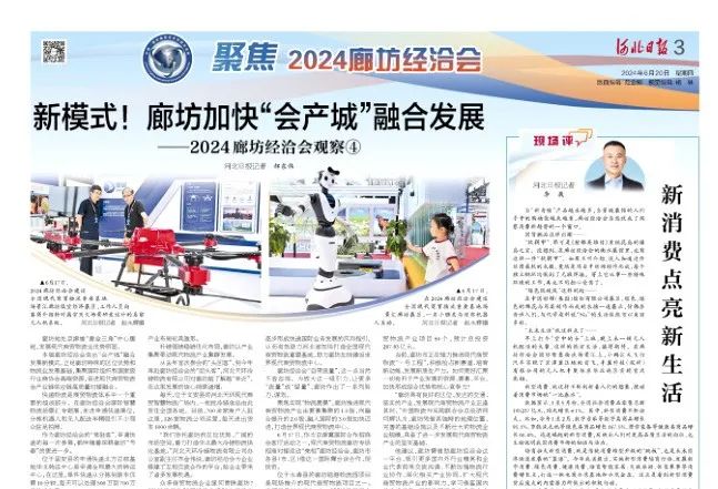 河北日报—— 6月17日,2024廊坊经洽会建设全国现代商贸物流重要基地场景汇廊坊低空经济展区,工作人员向客商介绍针对高空灭火场景研发设计的系留无人机系统。