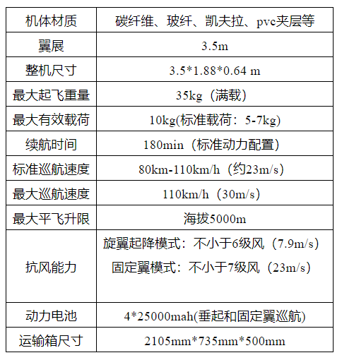 明德新材推出的电动垂起固定翼系列无人机包含多款经典机型:MD-G25、MD-G32、MD-G35等,具有轻量便携、快速拆装、性能优异等特点。常规产品参数如下: