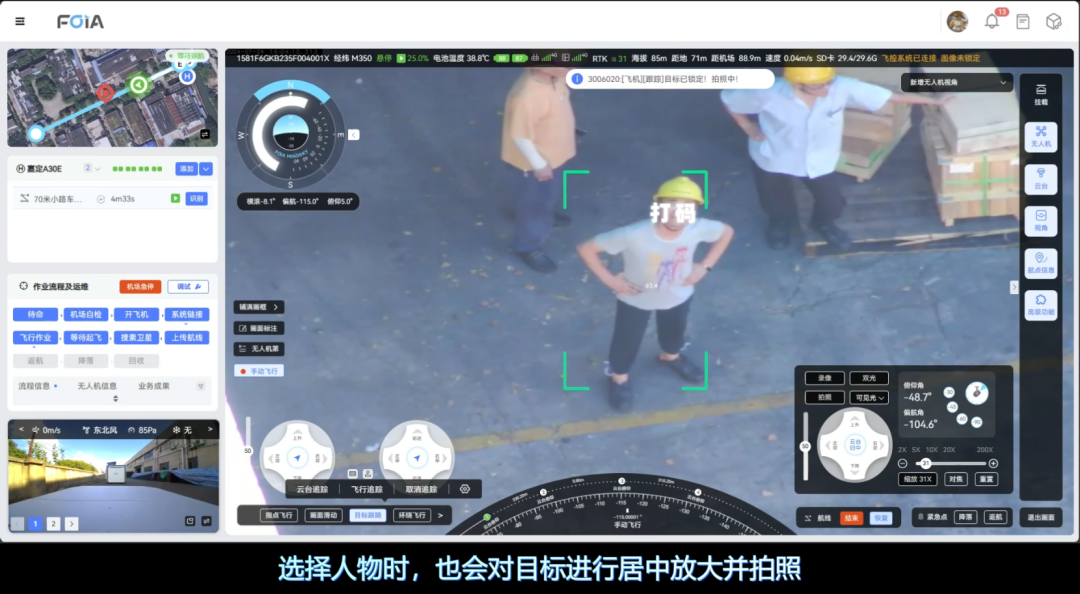 目标选择:在操作人员选中画面中的目标后启用该功能,无人机立即锁定并开始跟随。