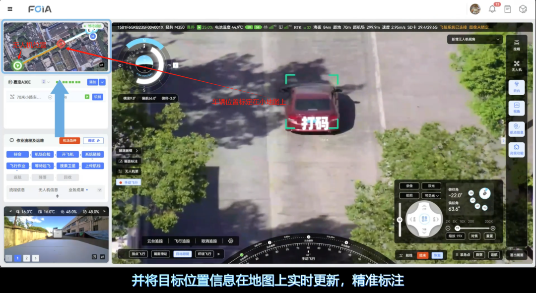 同时目标的位置信息也会在画面中的地图上实时更新,精准标注。
