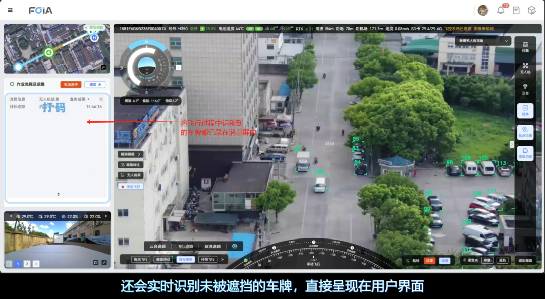 在复杂多变的城市环境中,实现对特点目标的有效观察,复亚智能无人机管理平台的目标跟随/车牌实时识别功能,显著提升对目标信息的捕获能力。