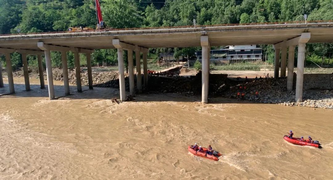 7月19日,陕西省商洛市柞水县境内突发暴雨山洪,导致丹宁高速公路水阳段山阳方向K46+200处严坪村二号桥局部垮塌。多辆车辆坠河,多人遇难失踪。