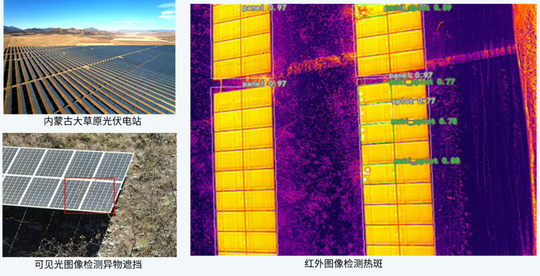 在光伏电站巡检中,PIE-Patrol利用高清可见光与红外双摄像头结合AI算法,精准检测光伏面板上的各种缺陷问题。这一应用不仅提高了巡检效率和质量,还确保了光伏电站的稳定运行和发电效率。