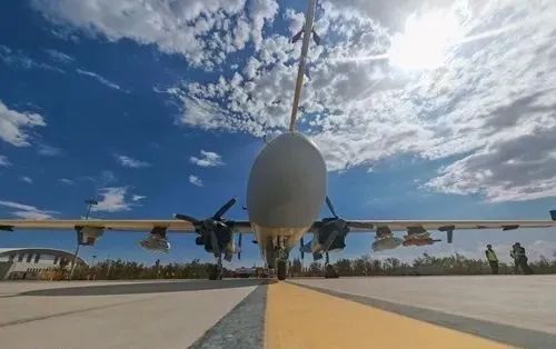 相对于一般无人机,本次执行人工增水作业试验的双尾蝎A无人机配置3台发动机,机身长10米,高3.1米,展开双翼达到20米。