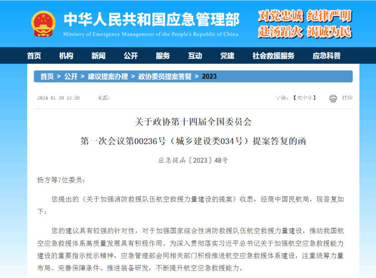 年初,应急管理部发布《关于政协第十四届全国委员会第一次会议第00236号(城乡建设类034号)提案答复的函》(以下简称“函件”)中提出,将围绕“规划航空救援力量布局、提升空地一体救援能力、改善航空救援保障条件、推进航空装备研发采购”四个方面推进航空应急救援体系建设。