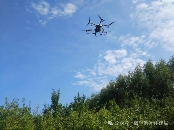 近期,一架架无人机在公园与广场的碧空翱翔,一场精确、高效的绿色守护行动有序展开。这些高科技的“空中精灵”装载着特制的病虫害防治药物与营养肥料,自如穿梭于繁茂葱郁的树木之间,精准定位并均匀施洒,为公园与广场的每一寸土地注入了全新的生机与期望。