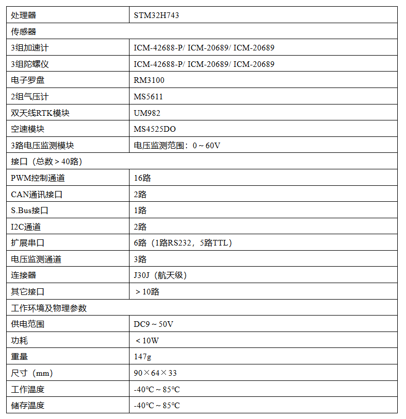 通过不断的技术突破和市场反馈,影飞科技首发重磅推出了KFC300飞行控制器。KFC300飞行控制器拥有行业优越的软硬件配置、卓越的性能设计、开放兼容与可定制化、品质+产能双重保障以及颠覆行业的定价体系。具体产品参数如下: