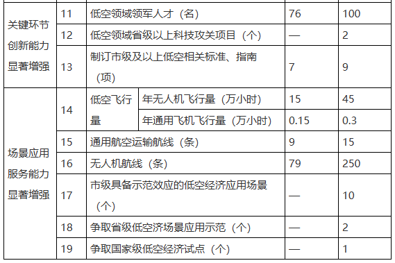 到2027年,基础设施供给、重点产业领域、关键环节创新、场景应用服务等4方面能力显著增强,建成具有绍兴特色的低空经济发展模式。同时,对标高水平民航强省指标,并结合实际,形成我市低空经济高质量发展指标体系,具体围绕4大方面提出19项指标,确保走在全省前列。