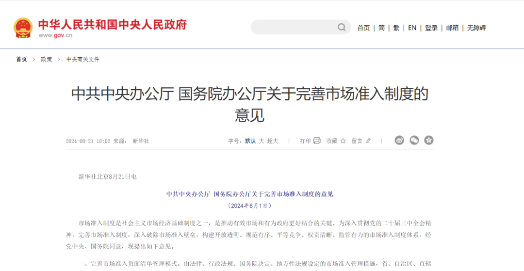 据8月21日新华社消息,中共中央办公厅、国务院办公厅近日印发《关于完善市场准入制度的意见》,其中明确要求前瞻性部署新业态新领域市场准入体系,更好促进新质生产力发展,聚焦航天、航空等新业态新领域分领域制定优化市场环境实施方案,率先推动海陆空全空间智能无人体系应用和标准建设,加快构建绿色能源等领域准入政策体系,选取航空航天、新能源等领域,推动重点企业、研究机构等创新单元和有关地方建立相关领域全球前沿科学研究协同模式,积极参与国际市场准入规则和标准制定。