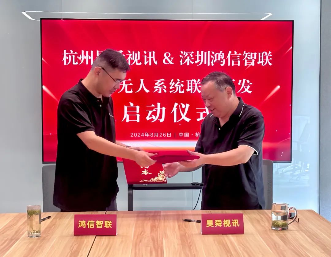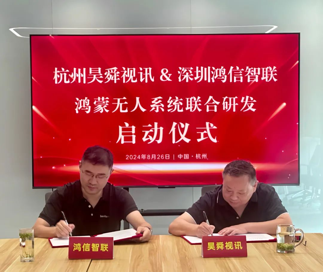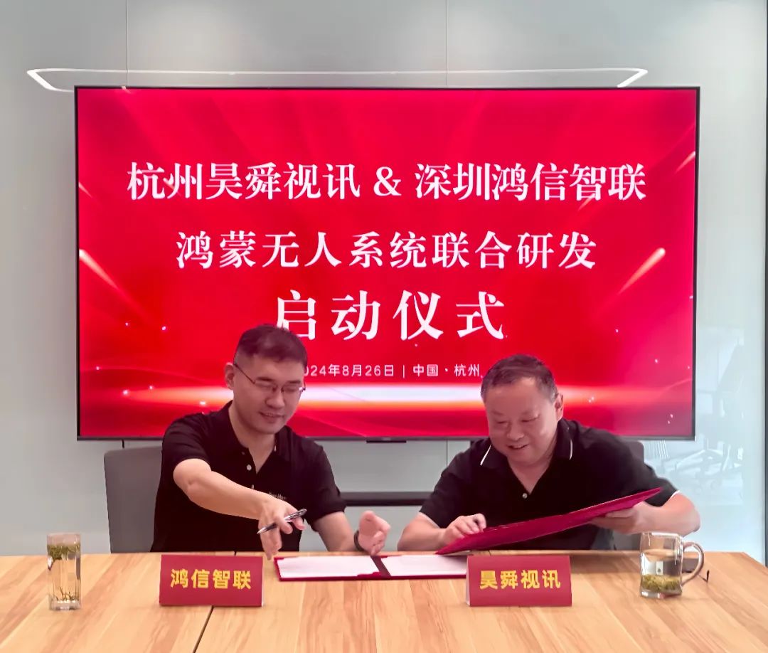 8月26日,杭州昊舜视讯科技有限公司(以下简称“昊舜视讯”)与深圳鸿信智联数字科技有限公司(以下简称“鸿信智联”)在昊舜视讯举行签约仪式,宣布双方正式达成战略合作伙伴关系,携手赋能鸿蒙无人系统联网与智能化应用的全面升级。此次合作标志着双方将基于开源鸿蒙生态,在无人机数智化底座技术、增值应用及视频图像AI分析等领域展开深度合作,共拓无人系统技术的边界,为智慧城市、工业4.0等众多领域带来颠覆性的创新解决方案。