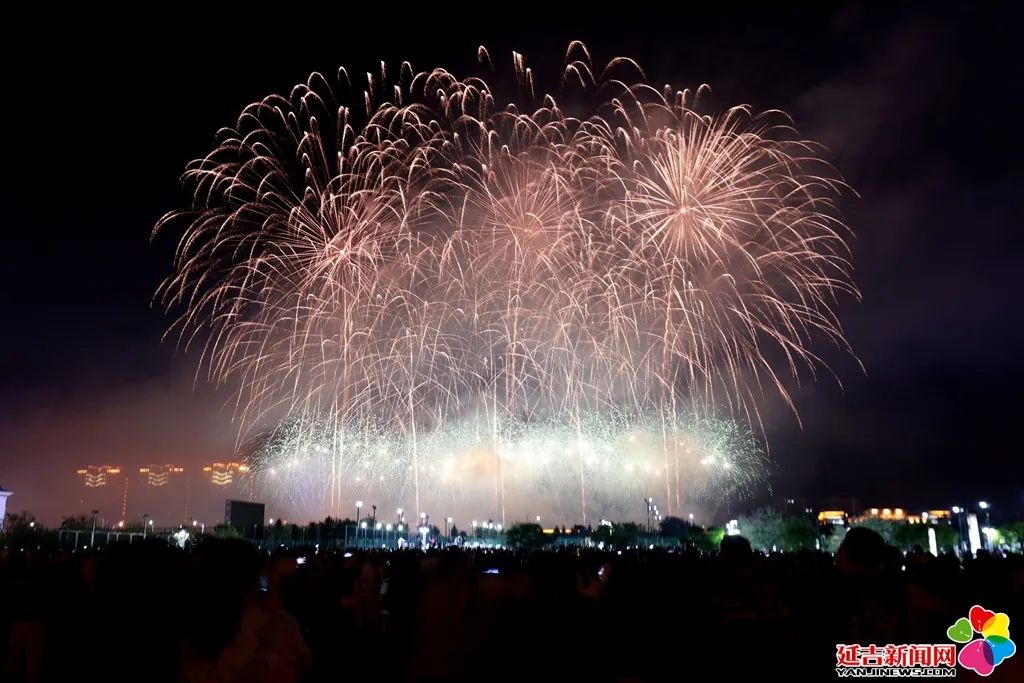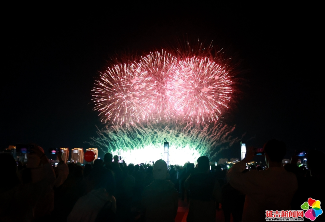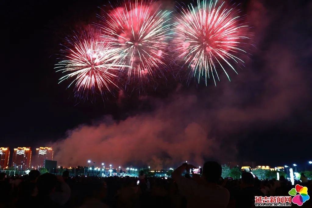 紧接着举行的焰火表演,以“欢庆时刻 共享美好”“魅力延边 七十二变”“民族团结 多元绽放”“共襄盛举 擘画未来”四个篇章展现延边朝鲜族自治州72年的辉煌历程,总燃放烟花数量达1.8万余发。市民和游客纷纷举起手机记录精彩瞬间,为延边祝福!