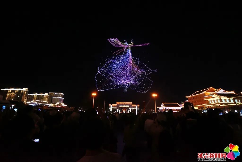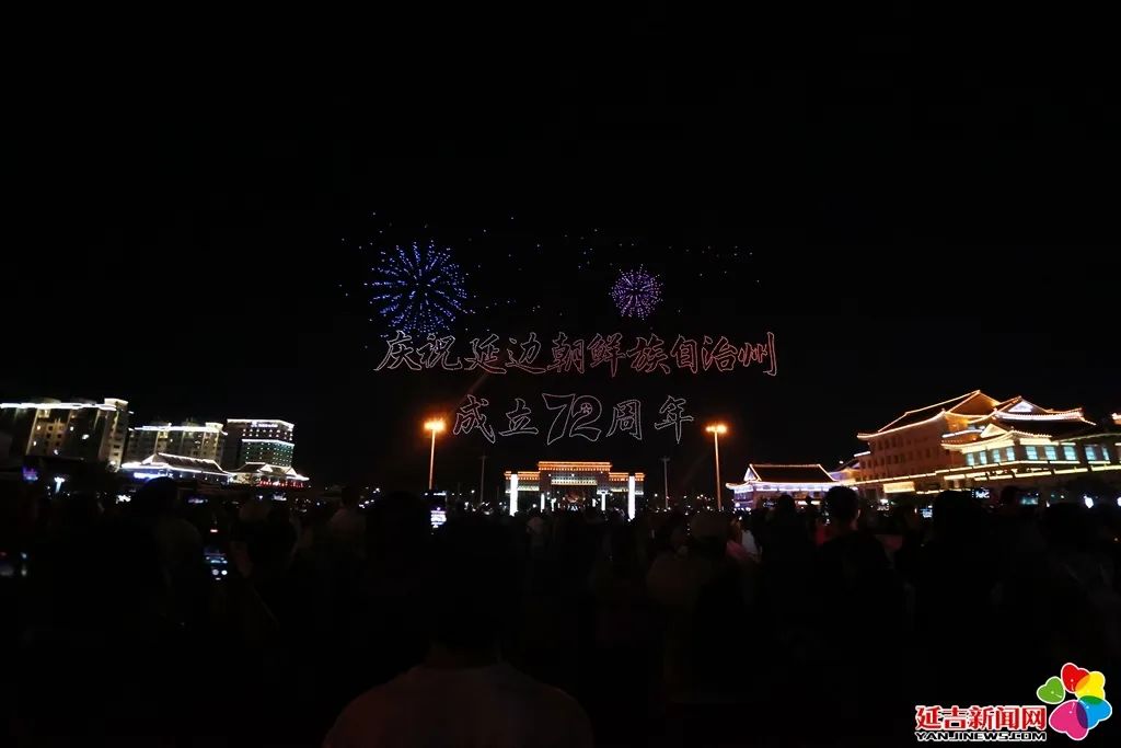 9月3日,延吉市委、市政府在州政务中心南广场和布尔哈通河畔举行了无人机编队表演及焰火晚会,庆祝延边朝鲜族自治州成立72周年。