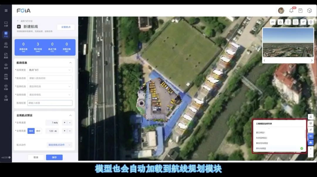 在完成三维模型后,模型也会自动加载到航线规划模块,用户可以将其应用于航线规划。