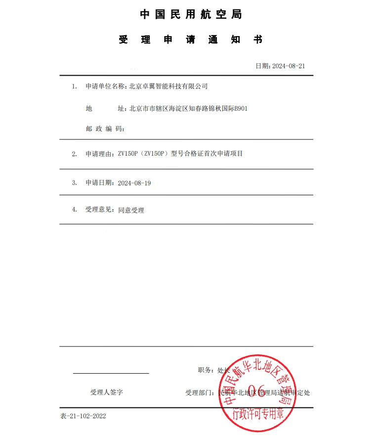 2024年,中国无人机行业迎来了新的里程碑。北京卓翼智能科技有限公司(以下简称“卓翼智能”)自主研发的ZV150P型号无人机系统提交了适航审定申请,并已由中国民用航空华北地区管理局正式受理。这标志着卓翼智能在无人机技术创新和产品质量管控方面取得了重大突破,也为国内无人机行业的规范化、标准化发展注入了强劲动力。