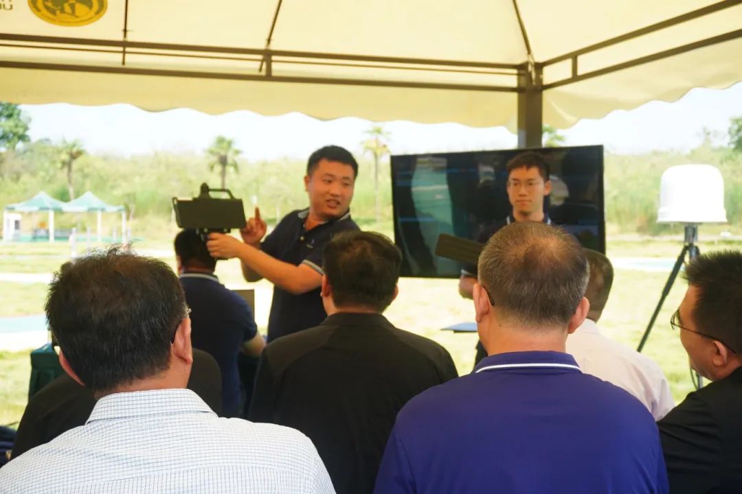 在演示现场,空御科技副总经理陈虎为各位领导们带来了分布式无人机探测防御系统的实机演示。他详细介绍了该系统的核心技术与设计理念,强调其分布式系统的优势在于具备主被动探测发现、软硬杀伤结合的,能实现全时段、全覆盖、全过程管控效果。该系统能够在复杂环境中实现对低空慢速小型无人机的实时预警、跟踪与灵活处置,为保护特定空域不受非法无人机侵扰提供了有效的技术手段。