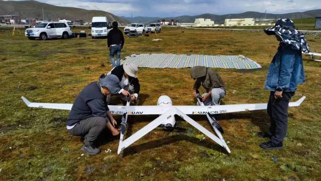 海拔4200米的高原上,环境条件极为恶劣,尤其是地形复杂、低氧、强风等自然因素给研究带来了巨大挑战。然而,纵横大鹏无人机凭借其卓越的垂直起降能力、长航时、高精度等特点,成功克服了这些困难。其中,CW-25E无人机搭载了先进的激光雷达系统,在高原地区的复杂环境中,能够在高空中快速、准确地获取地面三维数据,为断裂带的勘探和分析工作提供了丰富且高质量的数据支持,对于区域地震灾害预防和减灾工作具有重要意义。
