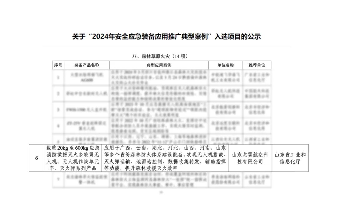 喜讯!2024年8月12日经山东省工业和信息化厅推荐,山东龙翼航空科技有限公司成功入选国家工业和信息化部“2024年安全应急装备应用推广型案例”。