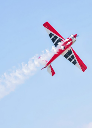 由运动员在地面利用遥控装置操纵固定翼飞机的各个舵面,完成规定动作和配合音乐自选自编动作的特技模型飞机。