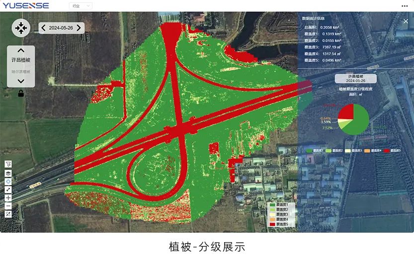 可实现可见光影像、行业应用提取成果等Yusense Map Plus行业模块标准成果叠加展示,同时图例信息与文字信息分区展示,数据成果一目了然。