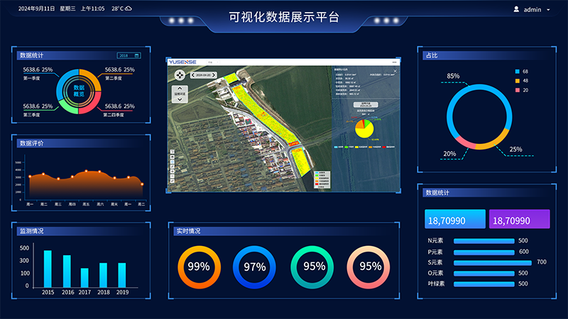 Yusense Viewer聚焦农业、林业、水环境三大行业(提供其他场景的定制开发服务)中航空遥感数据、地面监测数据的GIS发布及交互展示平台,平台可实现数据统一管理与应用,并发布各个典型行业生态环境的时空分布一张图。