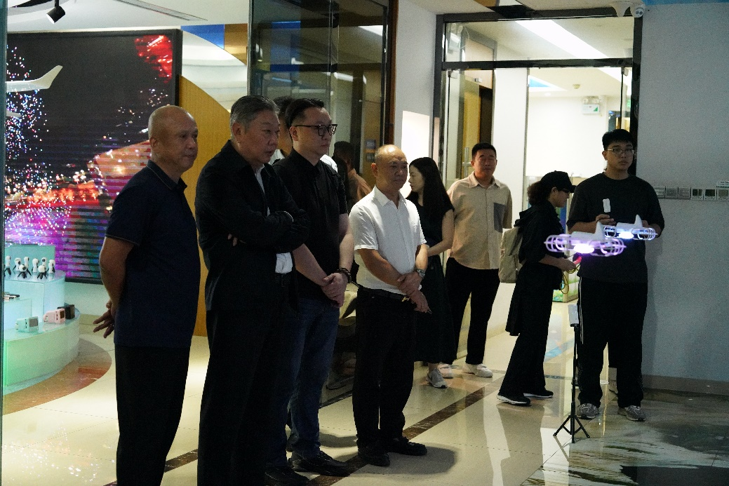 在公司广场,林左鸣理事长观看了高巨创新自主研发的无人机编队表演。表演展示了公司在无人机编队集群领域的技术优势,展现了无人机编队表演在城市宣传、文化旅游等应用场景中的广泛应用前景。林左鸣理事长表示,无人机编队不仅体现了技术创新的优势,也为丰富低空经济的应用场景提供了新的动能。