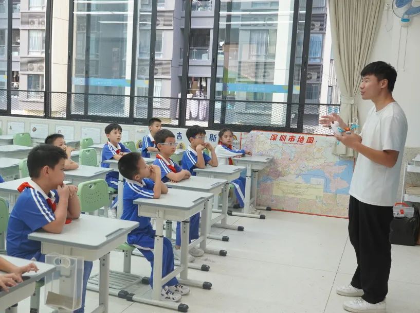 张教向同学们介绍无人机的组成结构、工作原理、飞行控制系统等基本概念和知识。