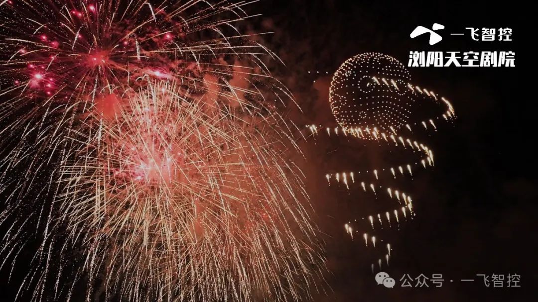 湖南·浏阳天空剧院无人机表演与绚烂的烟花秀异彩纷呈,无人机在空中排列出“孙悟空”“鲸鱼”“星球”等生动图案,与烟花的璀璨绽放交相辉映,为夜空中增添了更为丰富的视觉层次。观众们的阵阵惊叹与欢呼此起彼伏,为节日的夜晚注入无尽的喜庆氛围。这场交融传统烟花与现代科技的光影盛宴,充分展现了中国式独有的浪漫情怀,点亮夜空,也点燃了节日的热情!