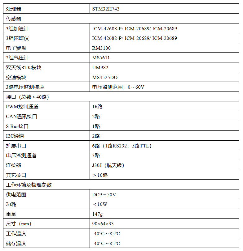 通过不断的技术突破和市场反馈,影飞科技首发重磅推出了KFC300飞行控制器。KFC300飞行控制器拥有行业优越的软硬件配置、卓越的性能设计、开放兼容与可定制化、品质+产能双重保障以及颠覆行业的定价体系。具体产品参数如下: