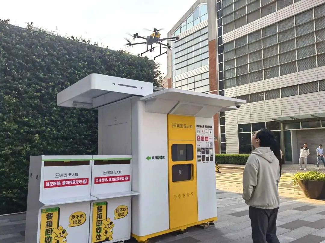 这是美团继商圈、公园配送之后开设的又一条新航线,旨在试水园区应用场景。记者在现场看到,前来取单的职工络绎不绝。白领何女士点了一杯奶昔,距离4公里多,10分钟不到就收到了,“我感觉还是挺快的,毕竟在天上飞没有红绿灯,也不用绕路,只要不‘爆单’,应该会比外卖小哥快。”