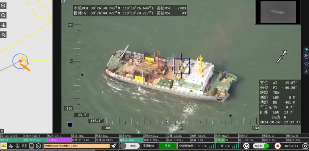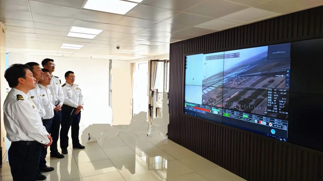 巡航前,指挥中心联合相关部门对巡航的总体范围、重点区域、重要信息进行了研讨规划,确保了巡航覆盖面广、区域有重点、信息有侧重。无人机自滦河口起飞至昌黎光伏项目最东侧边界,多次巡回巡航,巡航范围覆盖昌黎海上光伏项目全域,主要核查施工船舶动态和水域环境情况,未发现未经许可参与施工、船舶违规排放及三无船等情况。通过无人机回传的实时图像,对施工船舶“浩海0007”轮进行了重点核查。该轮AIS正常开启,甲板作业人员均穿着救生衣,巡航期间船舶正常进行勘探作业,此次巡航历时50分钟,巡视水域面积90平方公里,有效提升了水工项目安全监管效能。