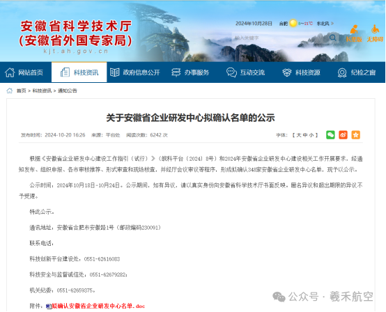 近日,由安徽省科学技术厅牵头组织的2024年安徽省企业研发中心建设认定工作圆满落幕,安徽羲禾航空科技有限公司凭借其在科技创新、研发能力和成果转化等方面的突出表现,成功通过认定!