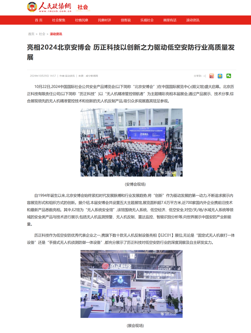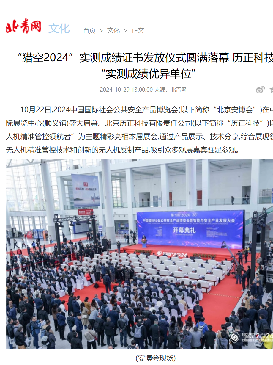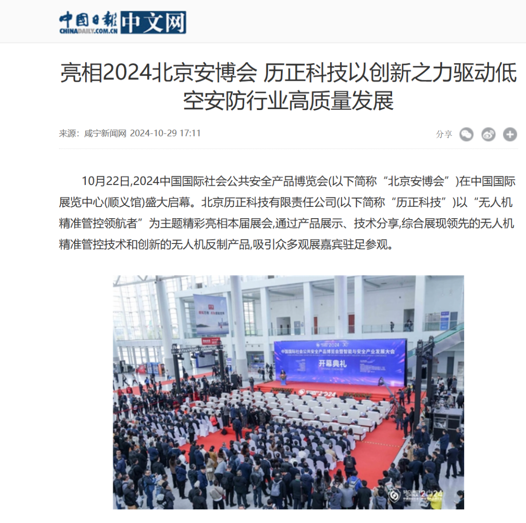 北京历正科技有限责任公司(以下简称“历正科技”)以“无人机精准管控领航者”为主题精彩亮相本届展会,通过产品展示、技术分享,综合展现领先的无人机精准管控技术和创新的无人机反制产品,吸引众多观展嘉宾驻足参观。