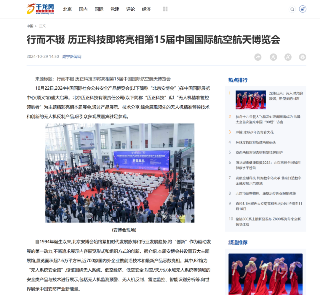 据介绍,历正科技还将亮相11月12日在珠海国际会展中心开幕的第15届中国国际航空航天博览会,届时,历正科技将有更多精彩呈现给万千观众。