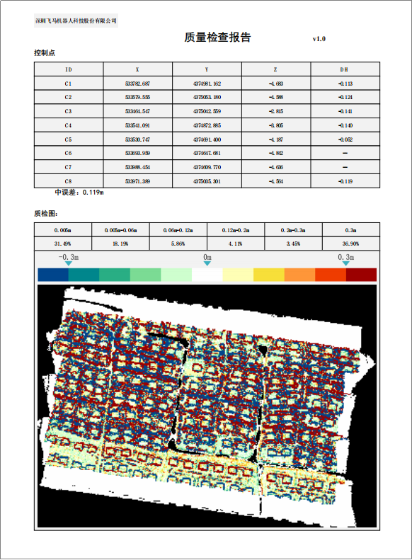 【检查点数据】在创建工程时即导入对应的检查点数据文件,解算的同时即可输出精度检查报告文件(解算时选择【质量检查】),输出路径为:“工程目录ResultDataReportAccuracy report.pdf”。