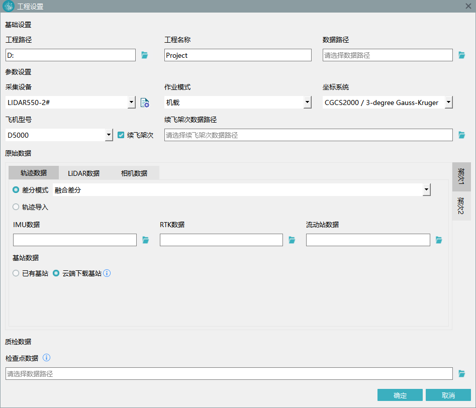 为了降低功能复杂度,提高使用效率,飞马研发对【新建工程】界面进行了如下重构,以实现后续数据的一键添加及解算处理。