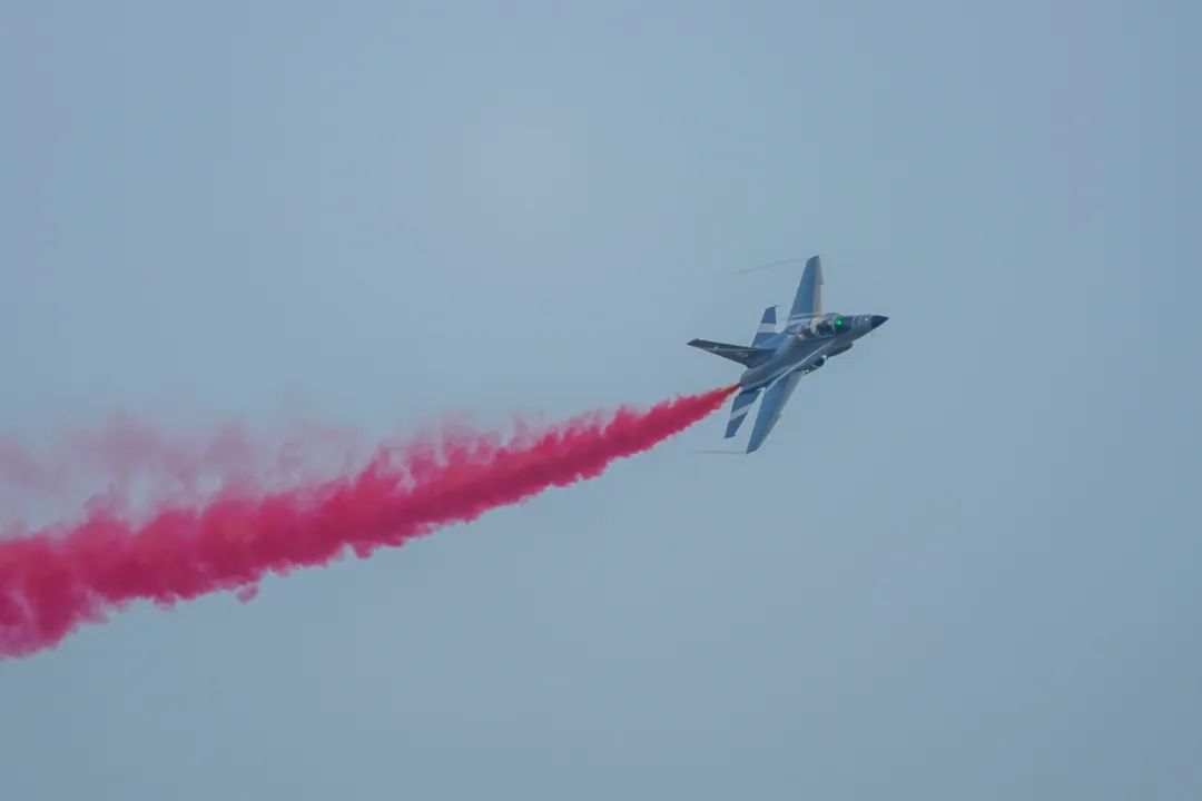 ▲静态展示区在飞行表演现场,中国航空工业集团研制生产的L15高级教练机进行了单机飞行展示,空军航空大学“红鹰”飞行表演队驾驶8架教8飞机以蓝天为幕,飞机作笔,绘就一幅幅精彩的多彩画卷。国产大飞机C919和ARJ21首次以双机编队进行了飞行表演。“红星”飞行表演队以3机编队形式充分展示了初教6的特技飞行性能。除了国内飞行表演队伍外,美国斯图亚特、法国守望者、俄罗斯首航等6支外籍特技飞行表演队进行了“天地竞速”“机翼行走”、飞机落皮卡、特技飞行焰火等高难度表演,为现场观众带来了一场天空特技与地面特技相结合的“速度与激情”秀。![]()