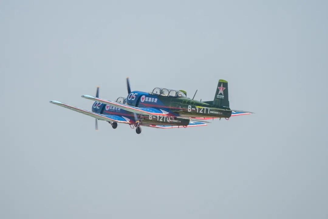 ▲“红星”飞行表演队驾驶初教6进行飞行表演![]()