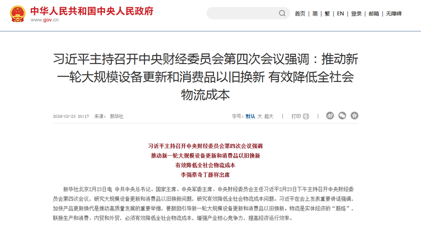 2024 年 2 月 23 日,中央财经委员会第四次会议强调降低全社会物流成本是提高经济运行效率的重要举措,鼓励发展与平台经济、低空经济、无人驾驶等结合的物流新模式,为无人机物流运输发展提供了宏观方向上的支持。
