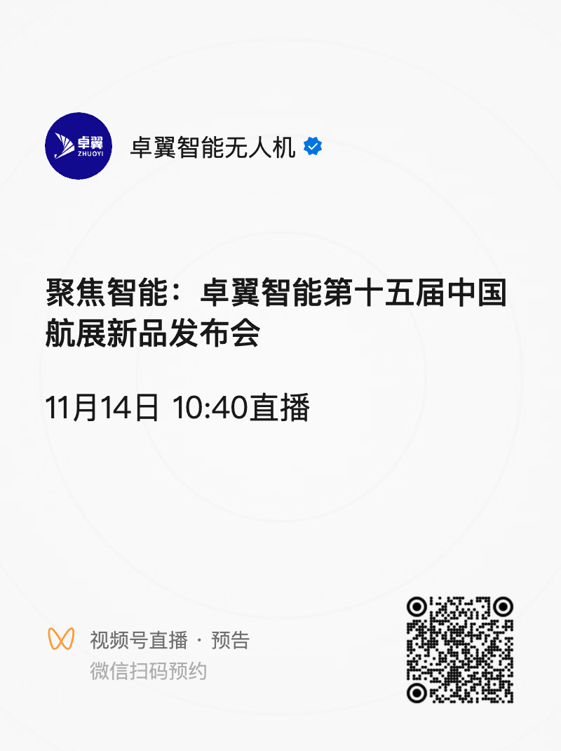 本次卓翼智能的室内展台 位于低空经济馆H8B6 ZTX260系留无人机高层灭火解决方案 D60(灭火版)森林防灭火解决方案 ZV150P应急通信解决方案 此外,我们即将发布2024年卓翼智能新品 敬请期待 该展台重点展出以军工技术为基础的 ZY-GZ140共轴双旋翼 TS-A8军用八旋翼系留无人机系统 ZM140P巡飞弹无人机系统 ZM25E巡飞弹无人机系统 以及ZS03E和ZS06E微型无人机系统 背后电子屏展示卓翼智能无人系统军事解决方案 同时还给航展迷和军事迷带来福利 在展台的接待大厅 大家可以在这里 “亲身”了解卓翼智能民用+军用智能无人机全系产品 别忘了站在这些帅气的无人机面前合影留念 并且参加线上集PIN活动 (先到先得,数量有限哦) ▲卓翼展台现场 小卓温馨提示 入场时请携带有效身份证件 提前购票和预约 在珠海航展期间 卓翼智能展台每天都会安排专门的讲解人员 各位卓翼智能粉丝们 可以提前预约直播间关注一波 👇👇👇 以上就是小卓 为您准备的观展小攻略 卓翼智能诚邀各位业界同仁、合作伙伴及媒体朋友 莅临我们的展台 共同探讨无人机技术的未来发展方向 共享这场科技盛宴