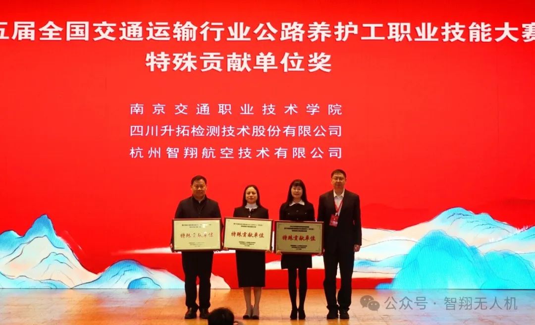 智翔航空作为本次大赛的协办方,精心组建了一支由资深教员构成的工作小组,深入研究国赛规则,制定详细的工作计划,积极做好赛前筹备工作与赛时服务保障工作,为选手们取得优异成绩保驾护航。在连续奋战与不懈努力下,大赛圆满成功,智翔航空荣获特殊贡献单位奖。
