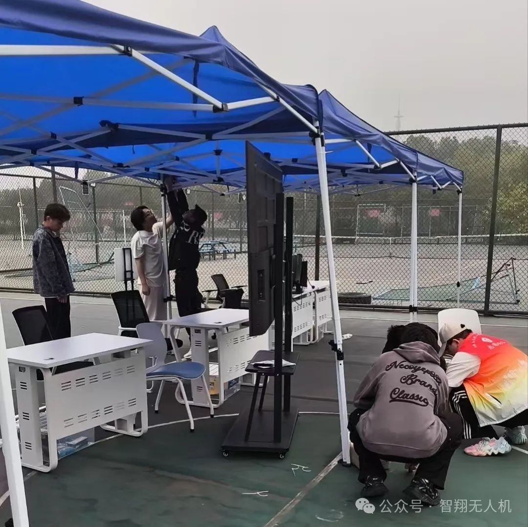 自11月初起,智翔航空工作小组全力备赛,全身心投入到大赛筹备工作中。11日制作无人机赛项任务书并制定评分标准,制作裁判评分手册;12日筹备赛前用具并进行测试;13日进行赛事流程演练查漏补缺,落实分工安排;14日开展裁判会议,修改赛事任务书及裁判手册,工作小组上交通信设备,封闭赛场做最后调试;15日完成赛题制作与布置;16-18日,实操比赛火热开赛,12名工作人员完成封闭式无人机巡检赛项技术支持工作;期间17日赛场遭受暴风袭击损失惨重,工作小组于凌晨6点全力修复,恢复正常比赛秩序。