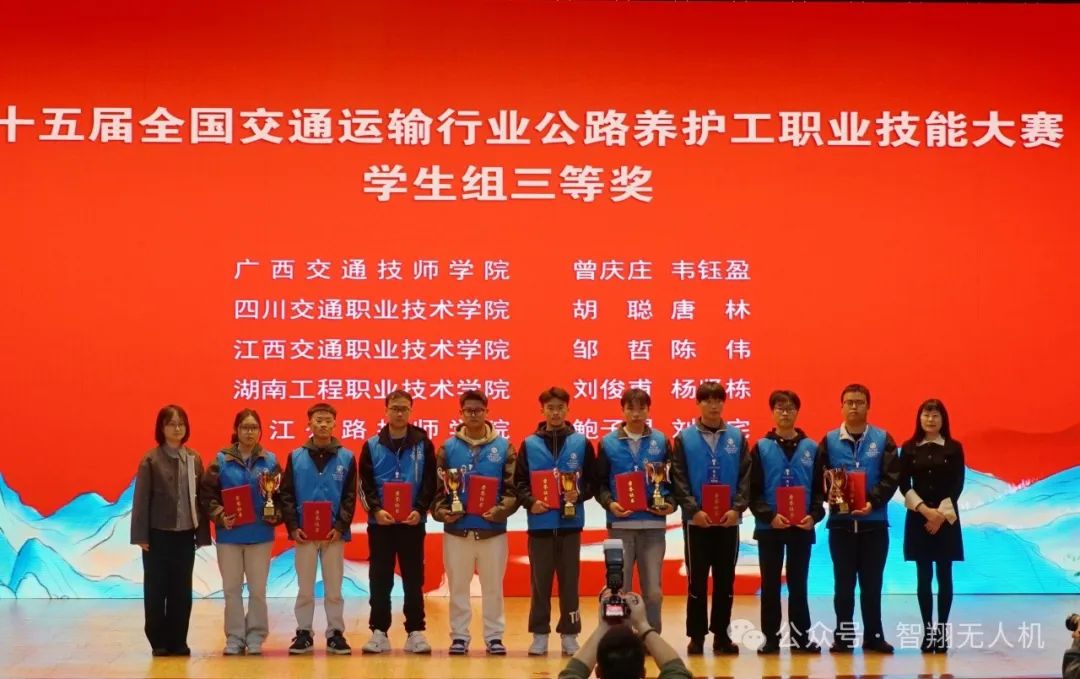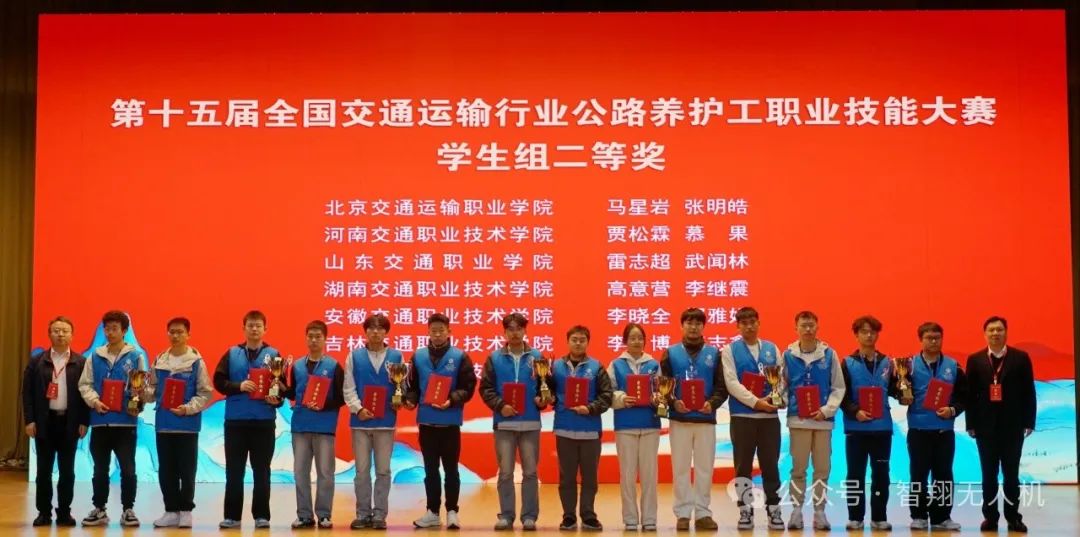 2024年11月16日-18日,由交通运输部、人力资源社会保障部、中华全国总工会、共青团中央共同主办,交通运输部职业资格中心、江苏省交通运输厅等承办,杭州智翔航空技术有限公司协办的第十五届全国交通运输行业“智翔杯”公路养护工(学生组)职业技能大赛全国总决赛在南京交通职业技术学院成功举办!