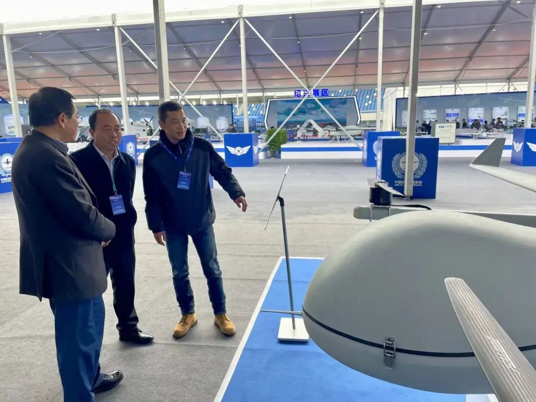 在HC-541展示区,领导们对这款复合式垂直起降技术的应急通讯无人机表现出浓厚兴趣。工作人员详细讲解了其采用的碳纤维及芳纶蜂窝真空成型工艺,轻量化与高强度设计的技术优势,以及其搭载动中通卫星通讯天线和4G/5G通讯基站的核心功能。领导们对无人机6小时续航及复杂场地灵活部署能力表示认可,并特别关注其在自然灾害、突发事件中的应急通讯保障作用。
