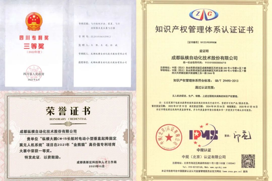 2022年,纵横股份荣获国家知识产权局颁发的“国家知识产权优势企业”称号,并多次获得成都市知识产权局颁发的相关荣誉。此外,公司还通过《企业知识产权管理规范》(GB/T29490-2013)认证,并持续有效运行。