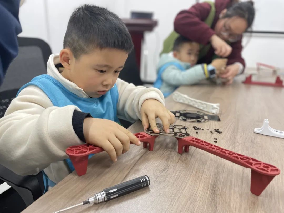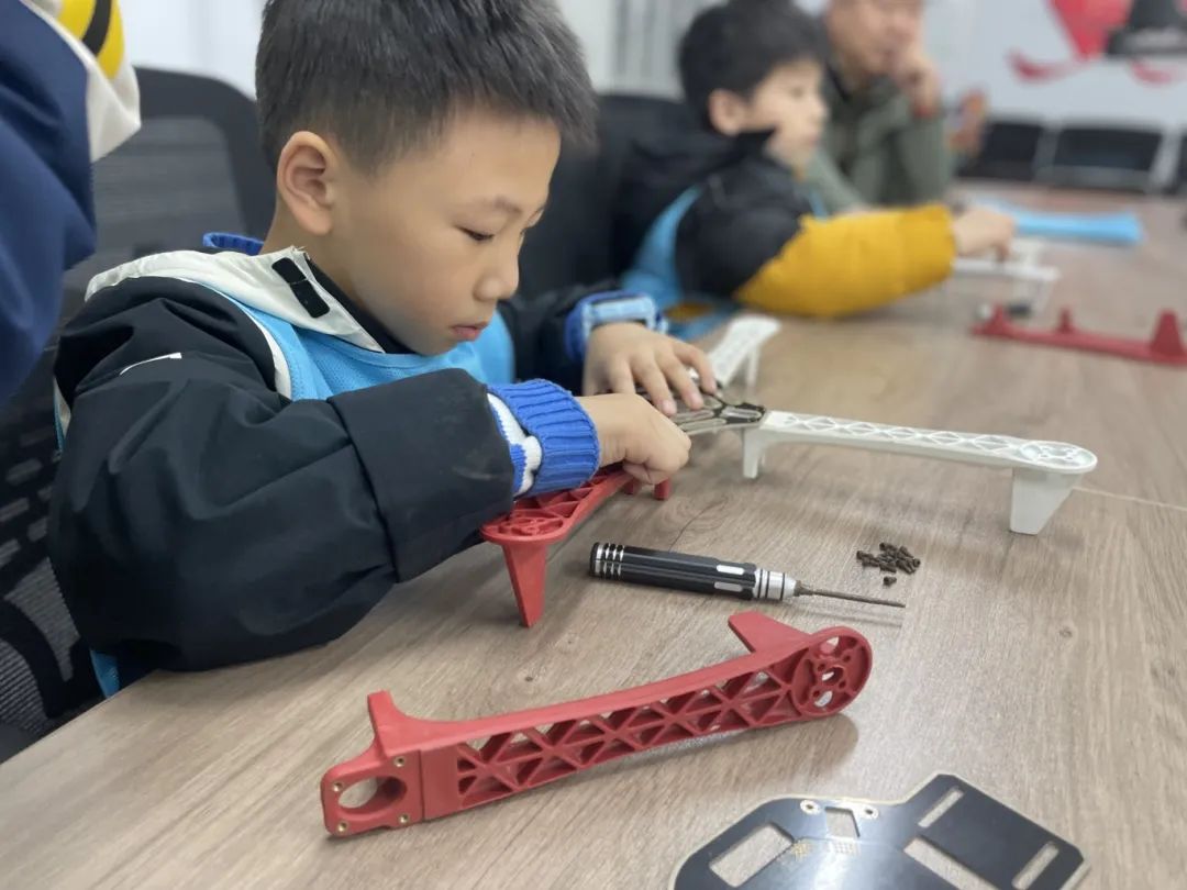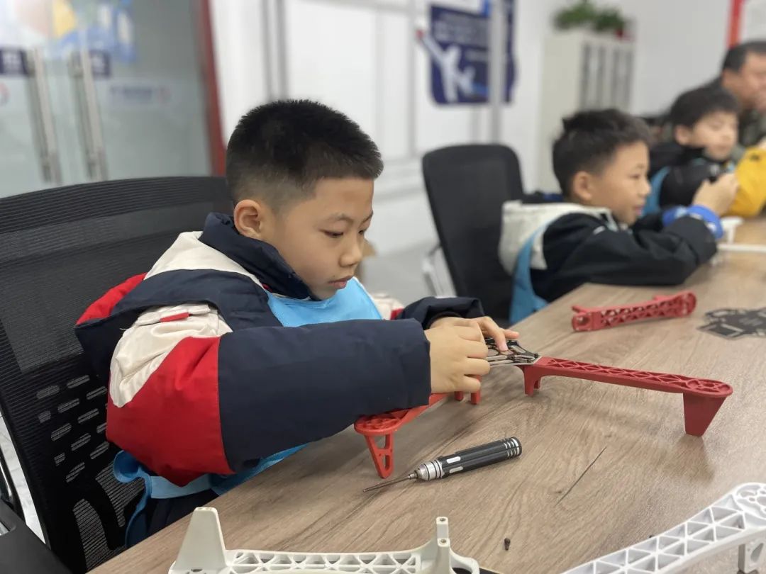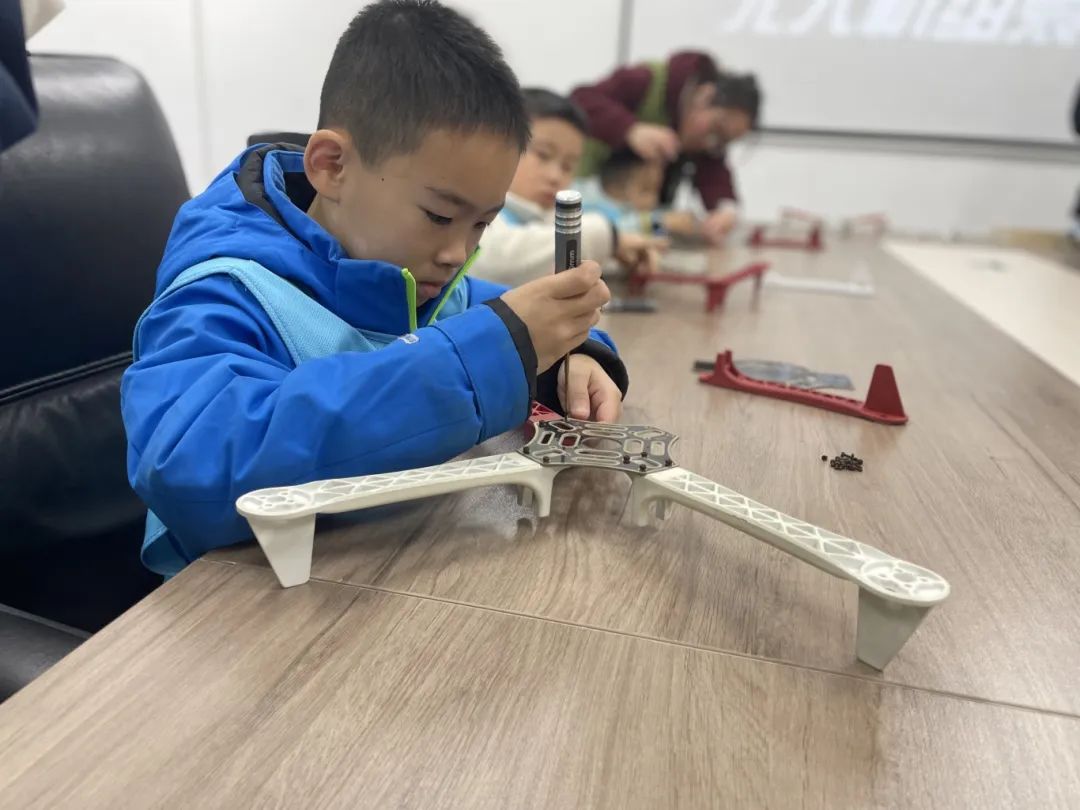接着,在老师指导下,小学员们进行了无人机设备零件组装实践。他们依照步骤,将零件逐步组合,通过亲手完成组装,实现从理论知识到实际动手能力的转化,获得成就感。
